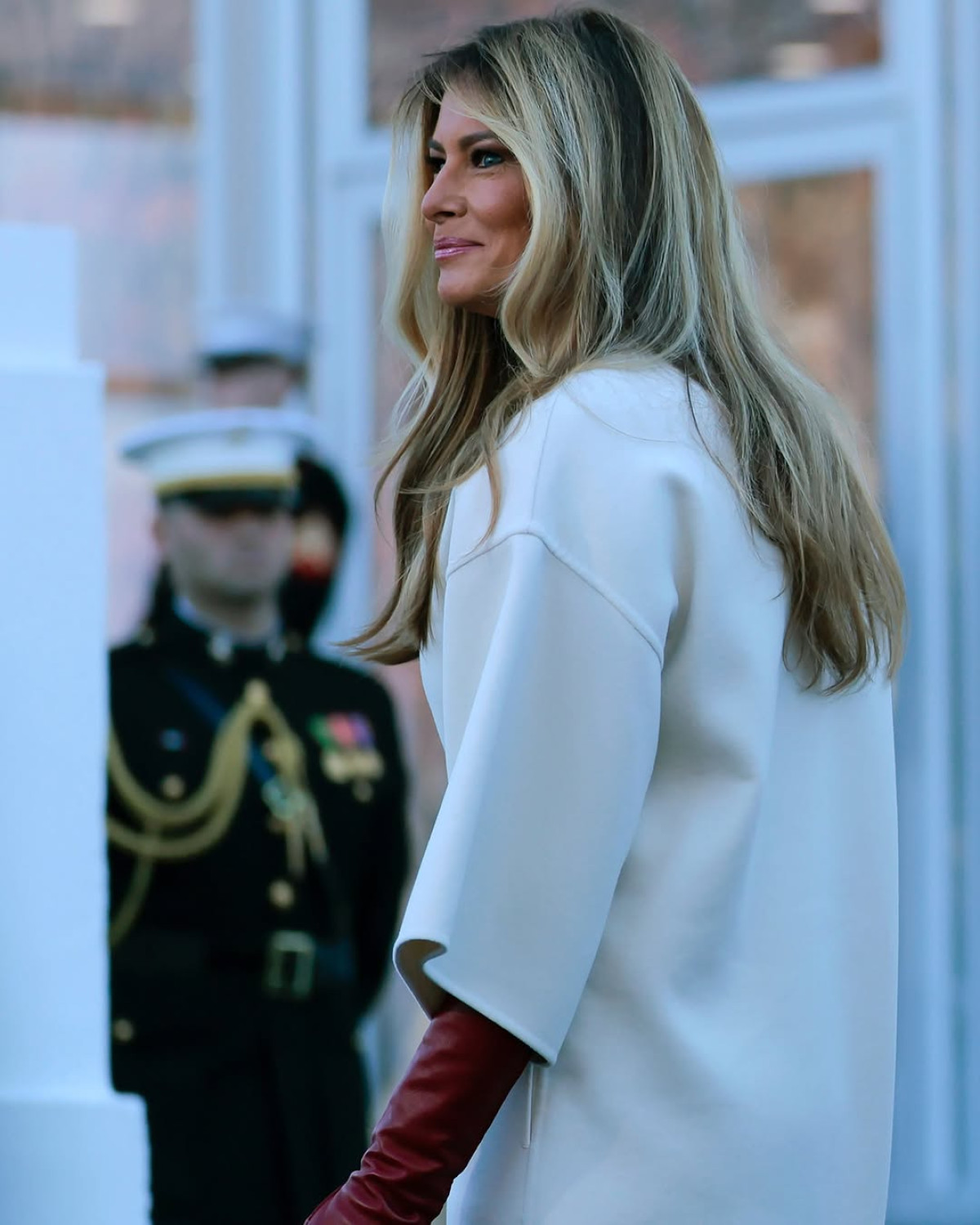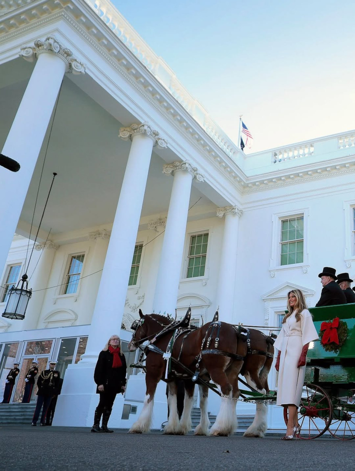 Меланія Трамп зустріла ялинку в елегантному світлому пальті Dior, картатих туфлях Manolo Blahnik й темно-червоних рукавичках. Під час церемонії вона подякувала фермерам за роботу та відзначила красу й пропорції ялинки. Після офіційного прийняття команди декораторів і волонтерів розпочинають оформлення Білого дому до свят. Тему та художню концепцію цього року буде представлено окремо, після завершення всіх підготовчих робіт.