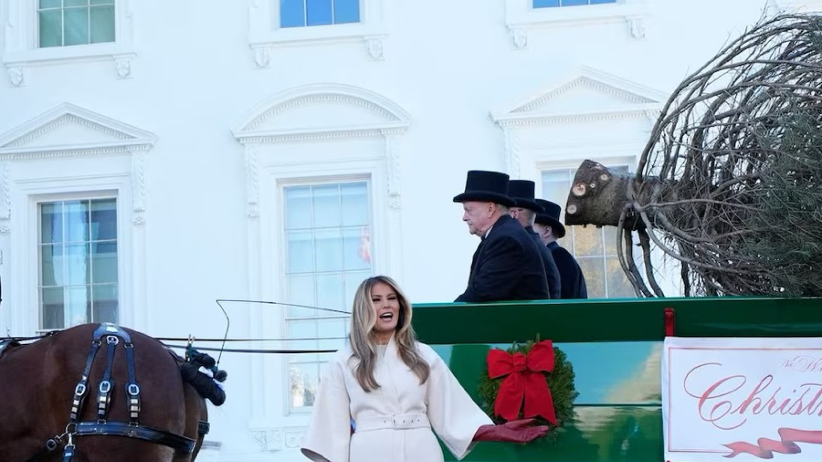 Перша леді США Меланія Трамп офіційно прийняла різдвяну ялинку Білого дому 2025 року. Церемонія відбулася біля північного входу резиденції у Вашингтоні й традиційно ознаменувала початок святкового сезону. Дерево, вирощене на сімейній фермі Korson’s Tree Farms у штаті Мічиган, доставили кінною каретою — це одна з найстаріших різдвяних традицій Білого дому. Дерево заввишки понад п’ять метрів буде встановлено у Блакитній кімнаті, де щороку розміщують головну ялинку резиденції.