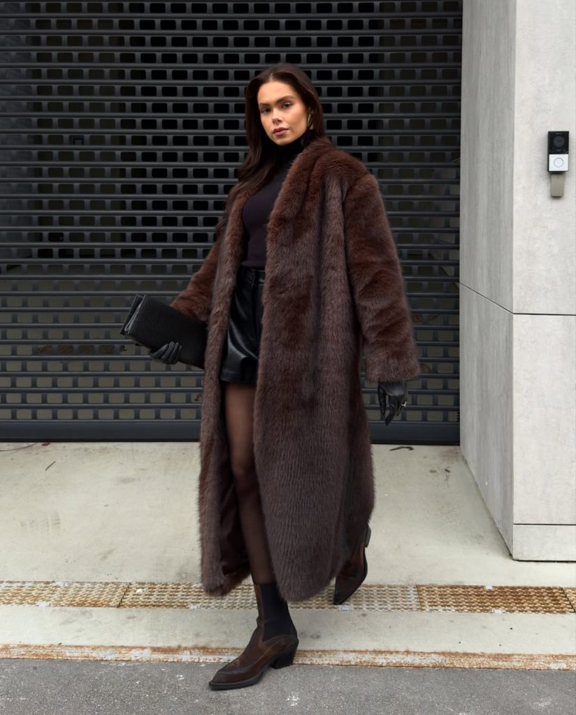 Найактуальніша стилізація — максимально проста. Faux fur добре працює як головний акцент, тож решта образу може залишатися стриманою: ваші улюблені джинси, трикотажні сети, мінімалістичні костюми. Для вечірнього виходу — сукня або костюм із чистими лініями, мінімум прикрас і правильні пропорції. Шуба зробить усе інше.
