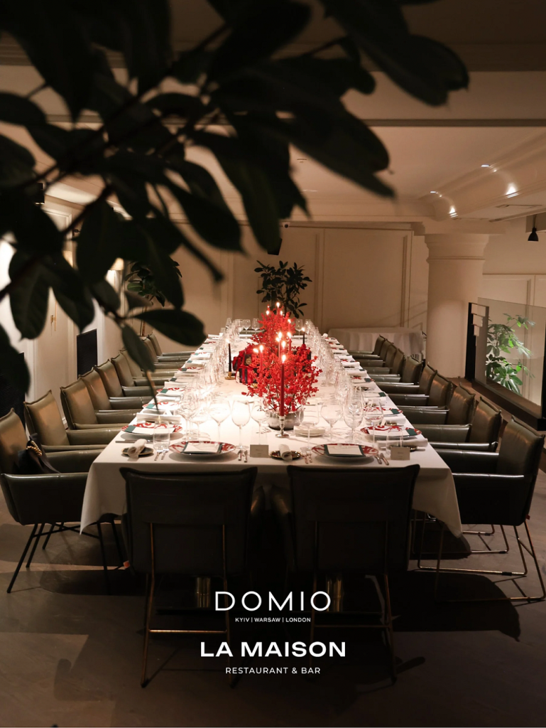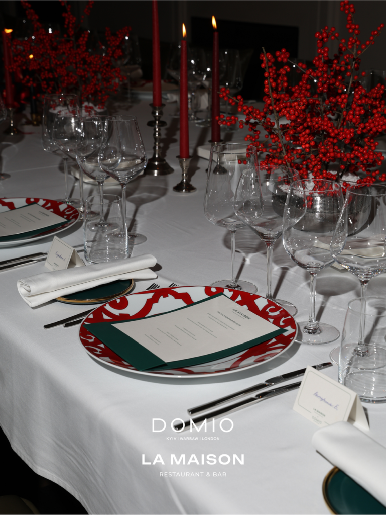 11 грудня Domio спільно з La Famiglia провели камерну вечерю для близьких друзів і клієнтів бренду. Місцем події став La Maison — ресторан сучасної французької кухні — простір, де гастрономія поєднується з панорамними вікнами, мʼяким світлом і витонченим неокласичним інтерʼєром.