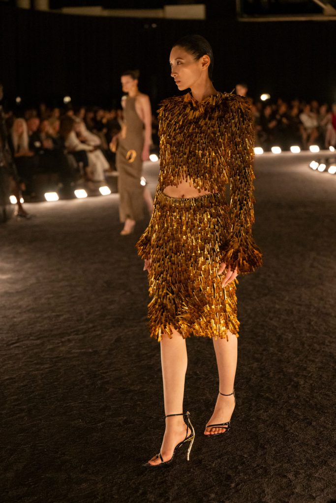 Зокрема, більшість креативних директорів брендів звернули увагу на святкові варіації подібних моделей, що чи не найкраще пасуватимуть різдвяним образам. Здебільшого вони втілилися у вигляді сяйливих спідниць з торочками, які переливаються на світлі й буквально оживають у русі. Каскадна бахрома підсилює відчуття урочистості та створює ефект легкої театральності, що так доречно виглядає у передноворічний період. Такі спідниці не потребують додаткових пояснень — вони самі задають настрій образу, апелюючи до атмосфери джазових вечорів і безтурботної елегантності минулого століття.