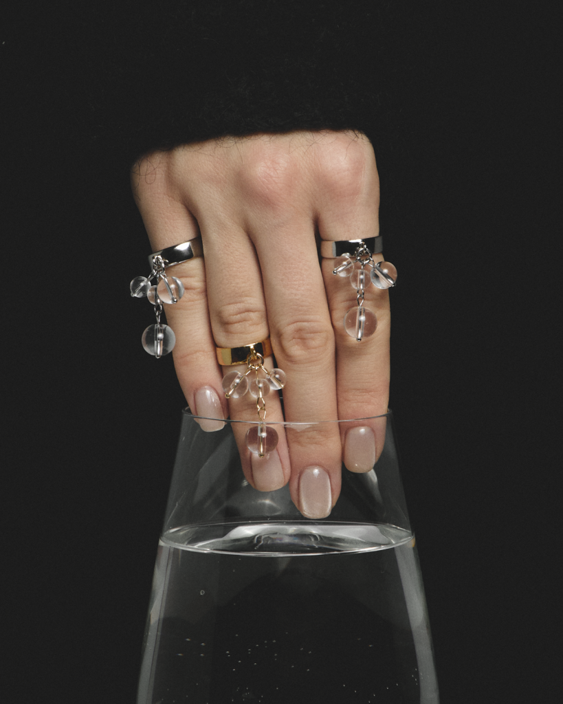 До колекції увійшли масивні браслети, кольє-чокери, що трансформуються у прикраси для сумки, сережки, каблучки та кафи з чіткими структурними формами. Кожен елемент легко інтегрується як у святкові образи, так і в мінімалістичні повсякденні поєднання, формуючи стилістичну капсулу.