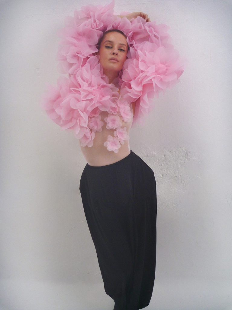 Квітка півонії залишається головною героїнею колекції — символом жіночої сили, ніжності та краси. Пелюстки, створені у фірмовій техніці laser cut, вручну формують квіти з кутюрним характером і перетворюють кожен виріб на особливий.