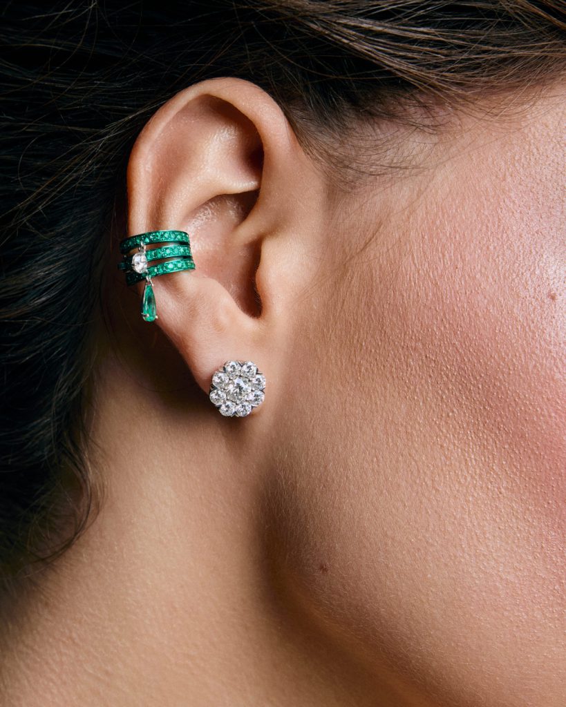 Поєднання смарагдів і діамантів — одна з найдавніших ювелірних комбінацій, яку використовували ще у королівських прикрасах Європи. У форматі кафа ця класична пара отримує сучасне прочитання, зберігаючи баланс між традицією та актуальним дизайном. Така прикраса демонструє, як історичні ювелірні коди адаптуються до сучасної естетики.