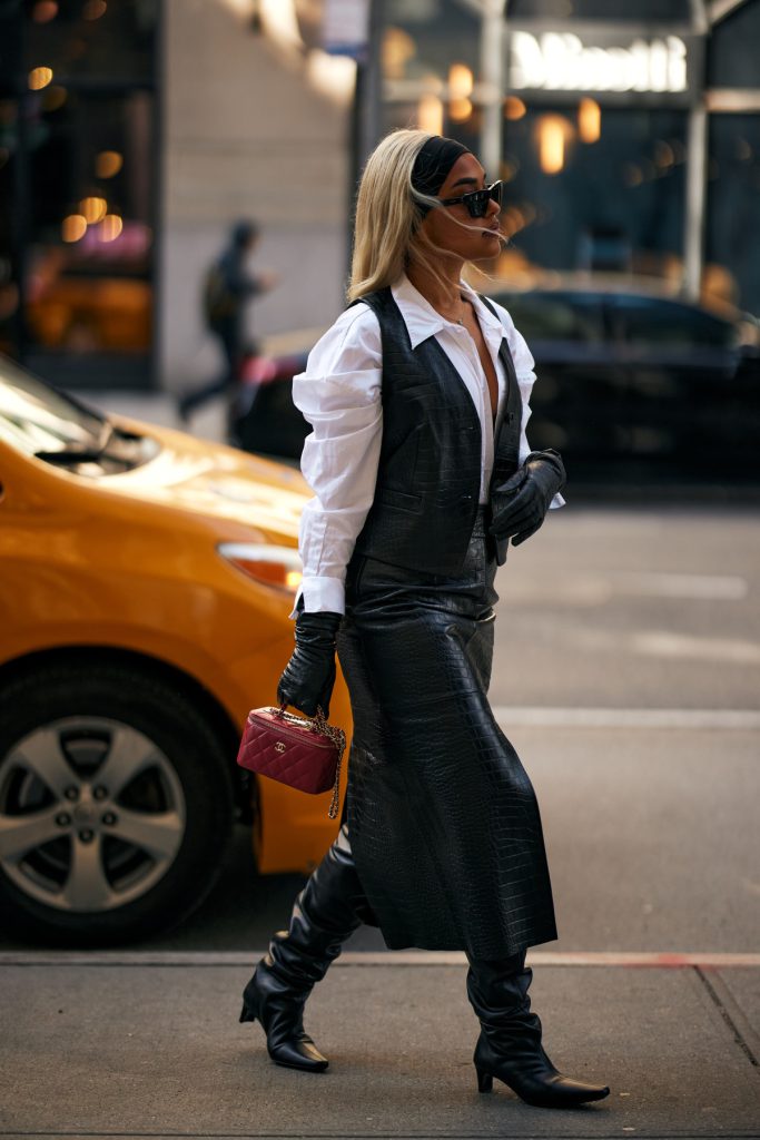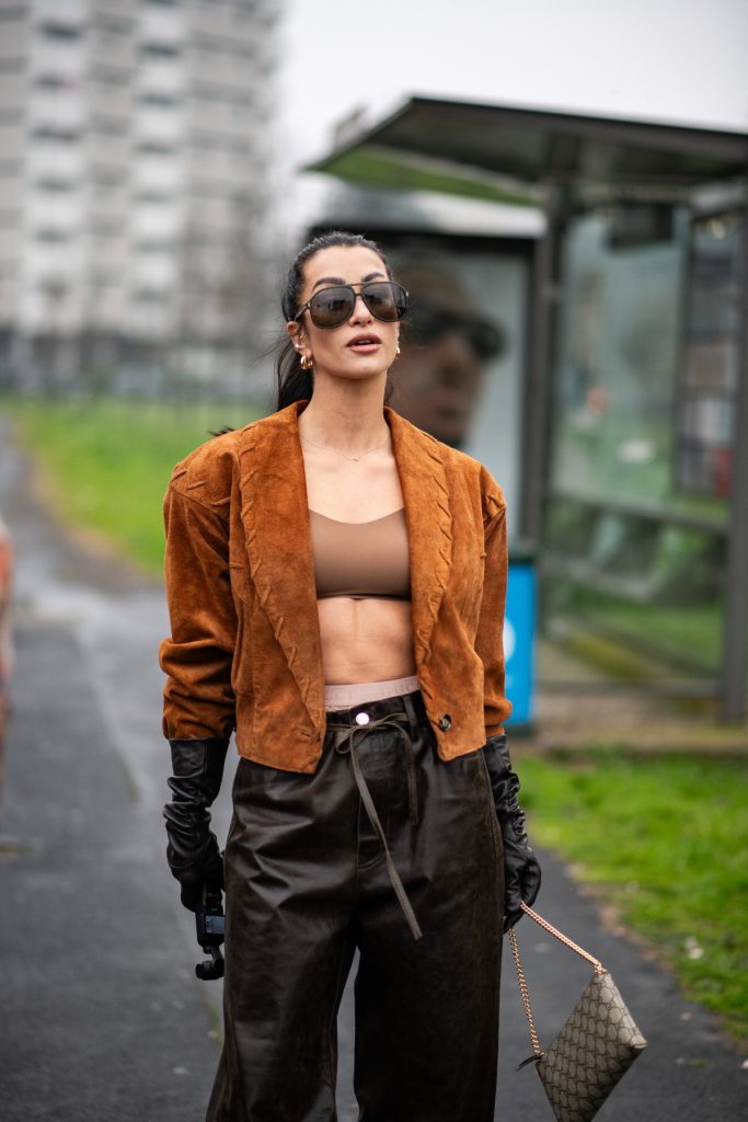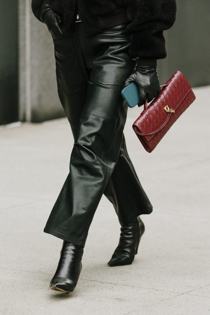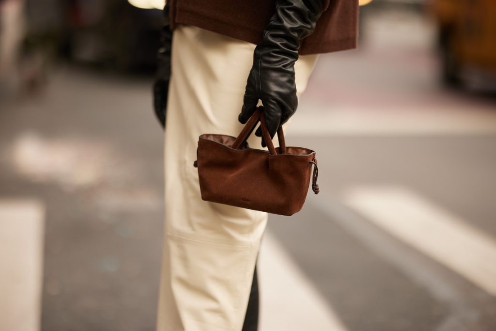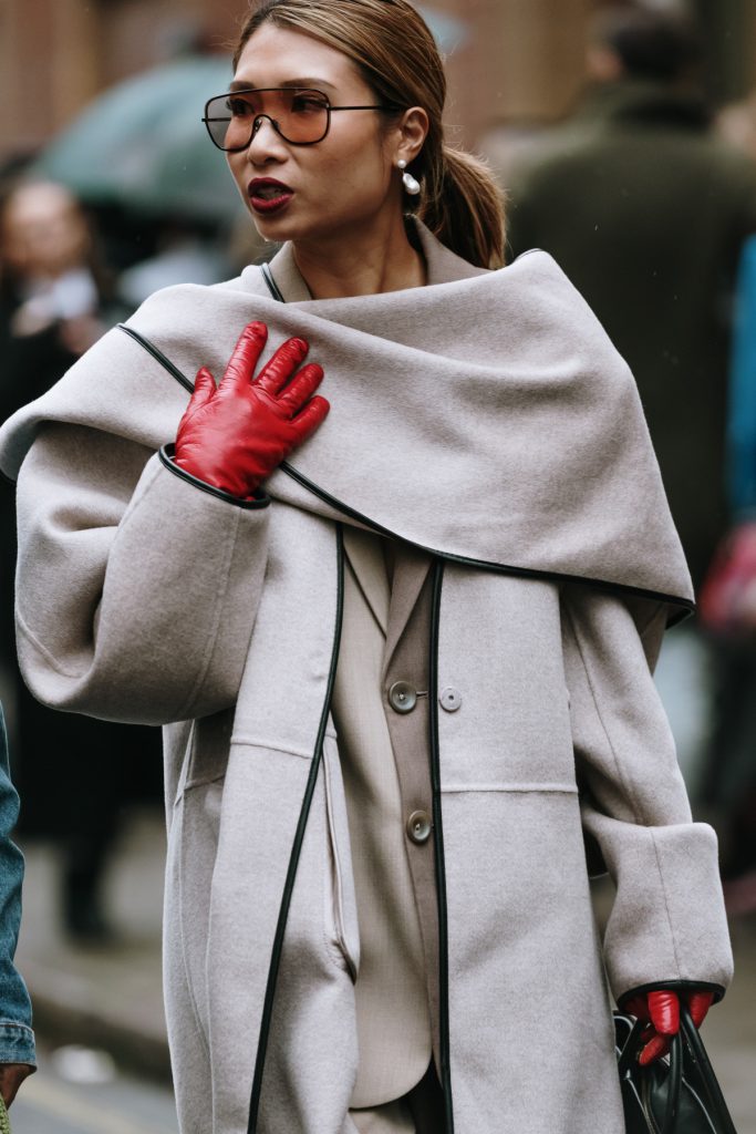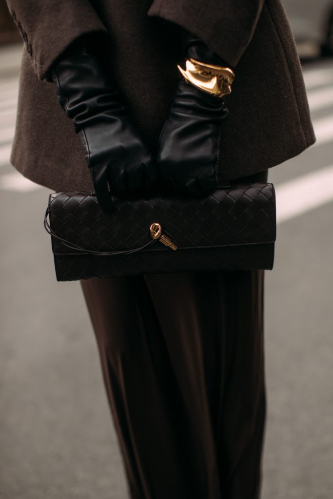 Так, у центрі уваги здебільшого опиняються шкіряні моделі, які або додають образам драми, або, навпаки, підкреслюють стриману лаконічність. Довгі шкіряні рукавички виглядають максимально ефектно в поєднанні з мінімалістичними пальтами, сукнями чи костюмами, створюючи легку театральну естетику. Короткі ж — універсальний варіант для щоденних поєднань, де важливі чисті лінії та зібраність.