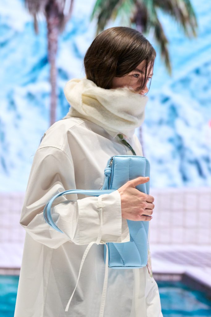 Холодний блакитний — ще один відтінок, який упевнено закріпився в колекціях 2026 року. Він виглядає свіжо, але водночас стримано, легко інтегрується в мінімалістичні образи та вдало працює взимку. Особливо актуальними є структуровані моделі або сумки з гладкої шкіри, що підкреслюють чистоту кольору.