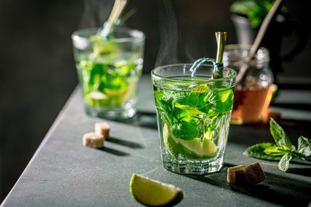 В чайник кладемо свіжу м’яту, пару скибок лайму, палички кориці і заливаємо гарячою водою. Має настоюватися 5 хв.