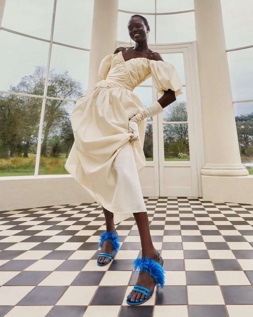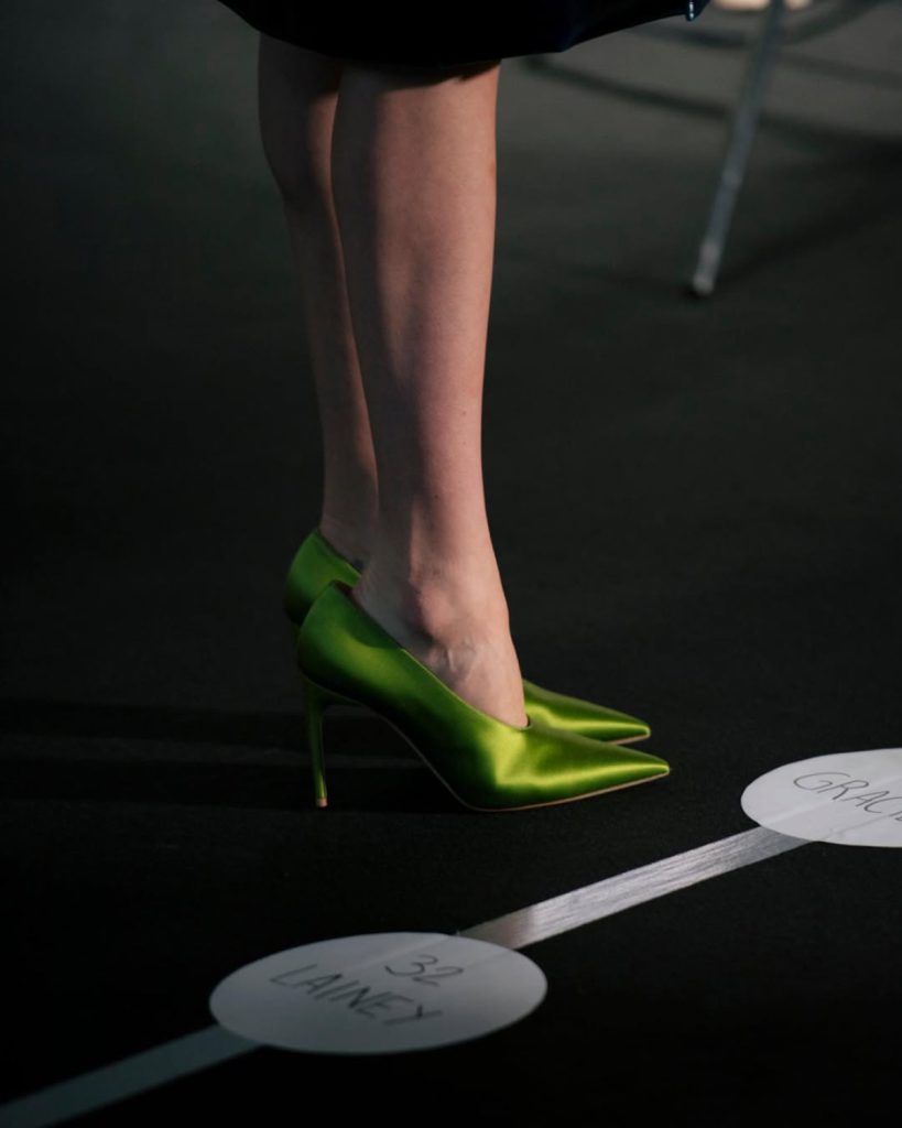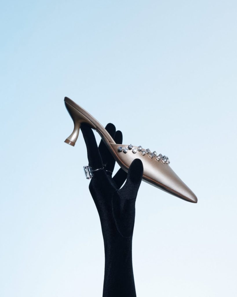 Її взуття — це грайлива, безапеляційно жіноча краса у яскравих кольорових палітрах. Але за зовнішньою легкістю ховається складна інженерія: традиційні техніки cordwaining, які посилюють природні контури стопи та підкреслюють ідеальне склепіння.