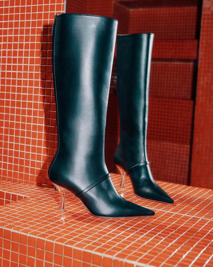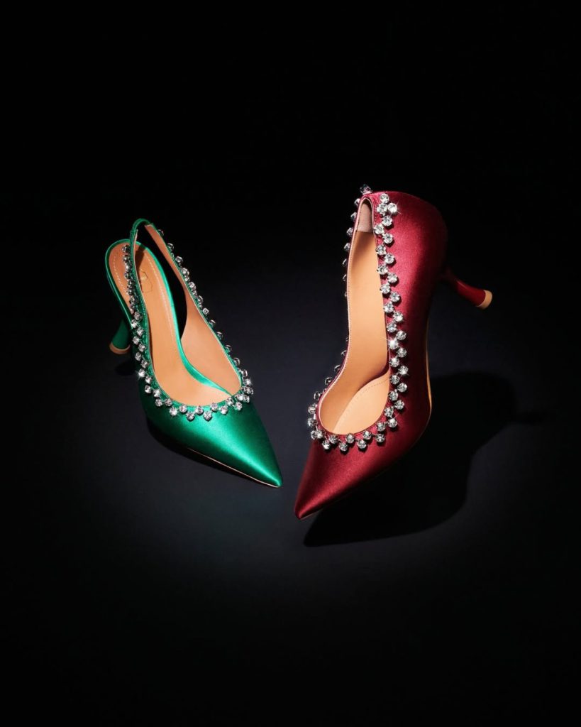 Окремої уваги заслуговує робота бренду з кольором. Malone Souliers відомий тим, що не прив’язується до сезонних трендів Pantone, а створює власну палітру — складні відтінки червоного, насичені винні, глибокі сині, м’які нюди з теплим підтоном.