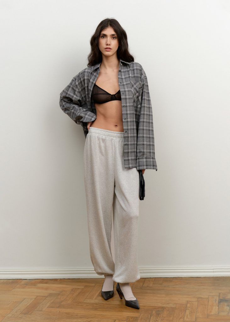 Український бренд AMBITNA презентує невеликий перехідний дроп із трикотажу та фланелі. BETWEEN — це колекція про жінку в моменті переходу: між сезонами, між рішенням і дією, між тим, ким вона була — і ким стає. Дроп зосередили на мʼяких силуетах, стриманих формах та картатому принті у двох відтінках. До капсули увійшли трикотажні брюки джогери з розслабленим силуетом, сорочка вільного крою, сорочка з акцентними рукавами та подовжена сукня-сорочка з фланелі у клітинку.