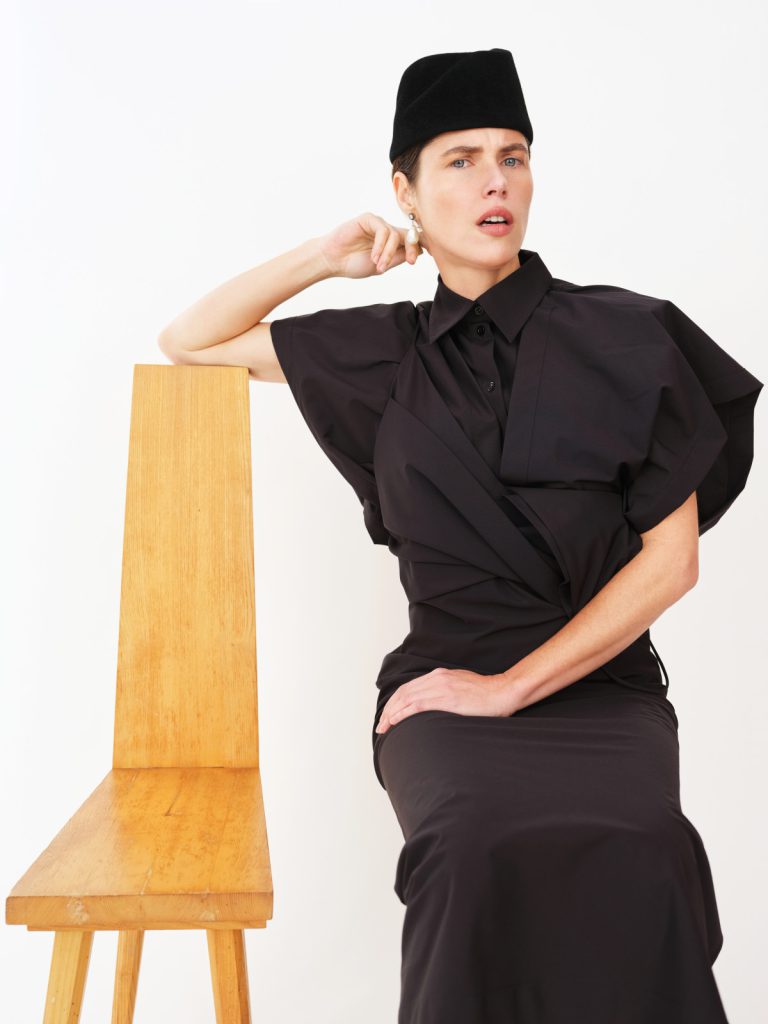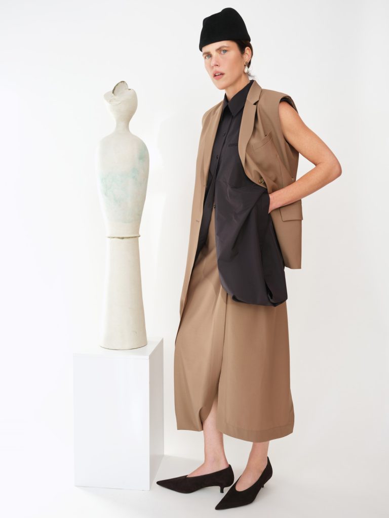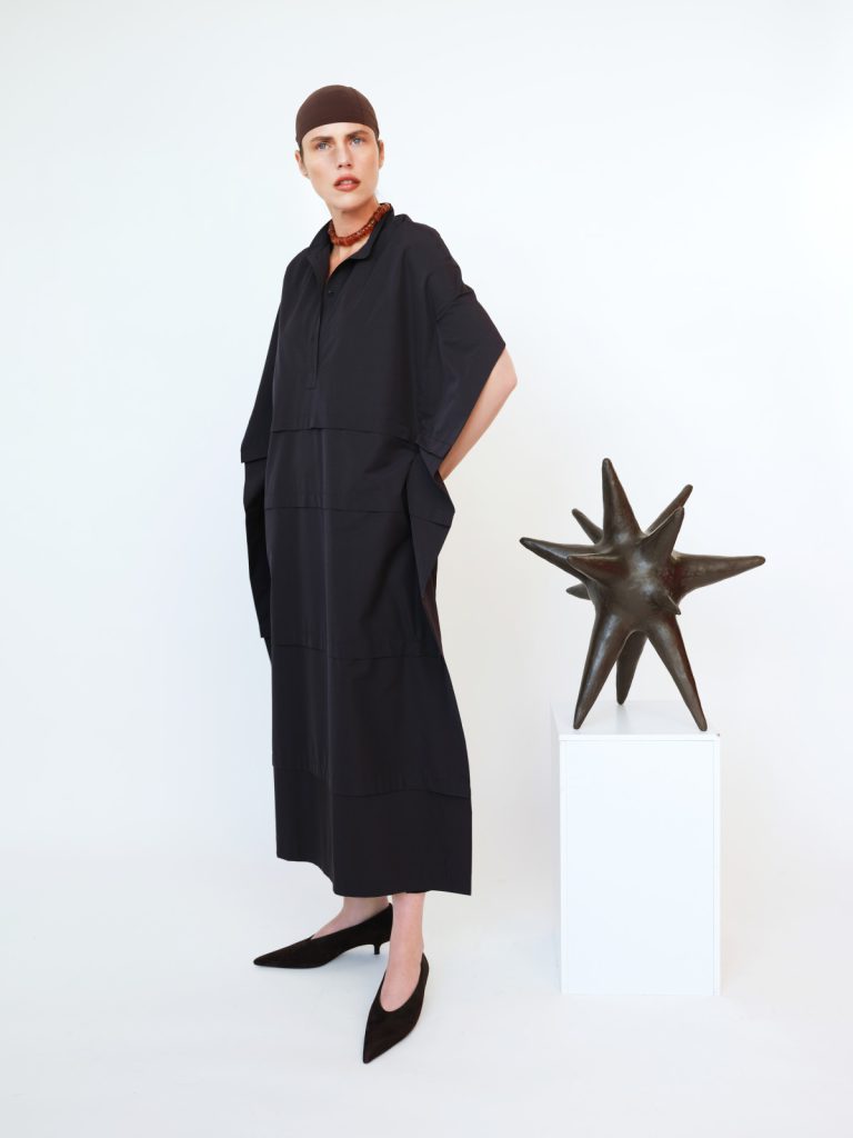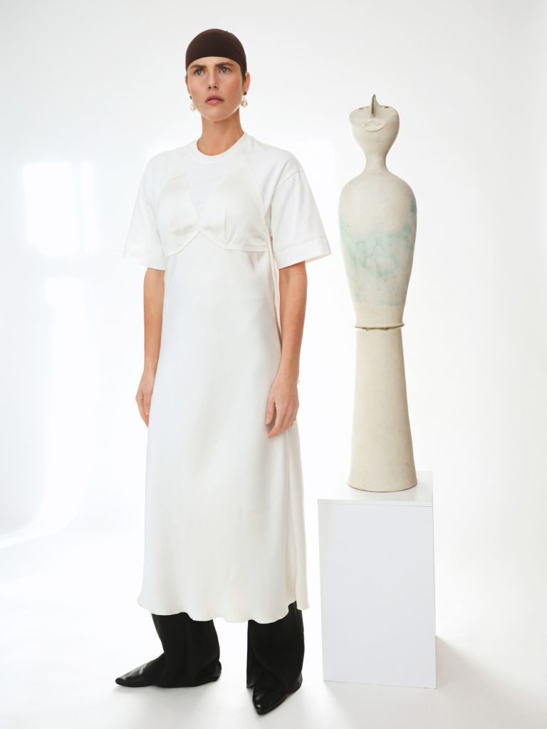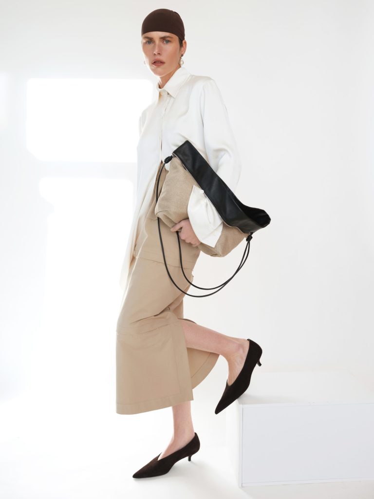 У Pre-Summer’26 форма втрачає чіткі межі та переходить у більш інстинктивний стан. Силуети ніби перетікають один в один, а тканини поводяться як живі — вони не є статичними й постійно перебувають у процесі змін. Колекція говорить про жіночу силу через свідому напругу: чисті лінії поєднуються з тонким безладом, а багатошарове конструювання створює відчуття контрольованого хаосу. Кожен виріб навмисно виглядає трохи незавершеним — як запрошення для власниці завершити рух, задати власний ритм і зробити річ продовженням власної мови тіла.