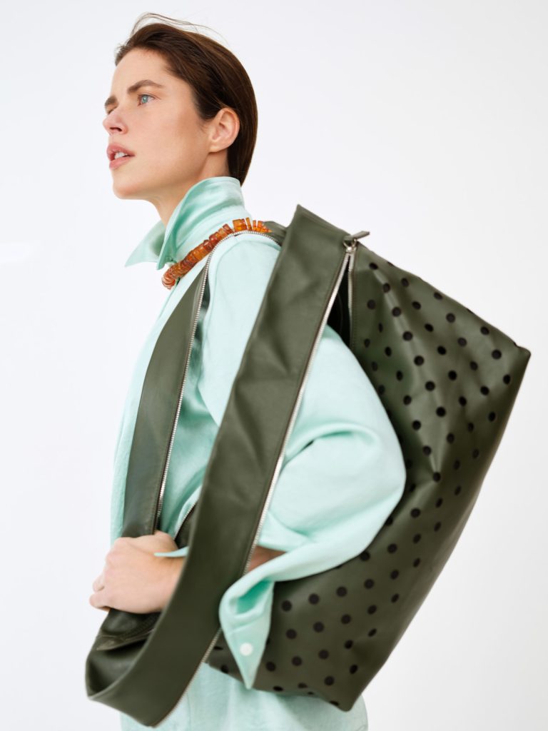 Кольоровим акцентом колекції став новий для бренду відтінок — м’ятно-блакитний. Він проходить крізь усю лінійку як лейтмотив: яскравий і водночас спокійний, цей тон підкреслює баланс між енергією та гармонією, напругою і м’якістю, структурою та текучістю.